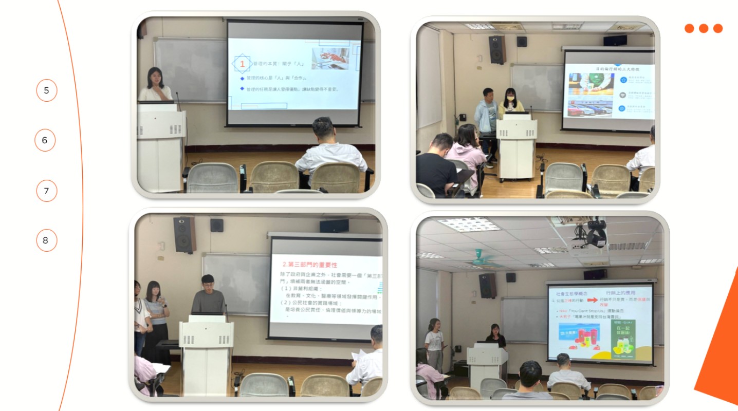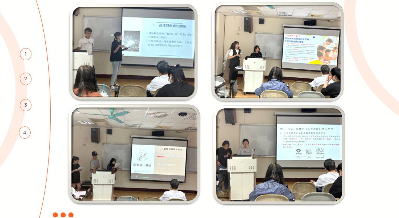 將杜拉克博雅管理哲學理論帶入課程中,另不定期舉辦活動(心得分享、小組競賽...等)